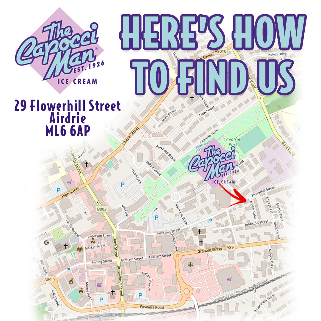 The business still operates from its original premises in Flowerhill Street, Airdrie. Of the 14 ice cream shops that existed in Airdrie in the first half of the 20th century, Capocci Man is the only one remaining! Apart from a handful of selected external cutsomers, Capocci ice cream can only be bought from the Airdrie shop.